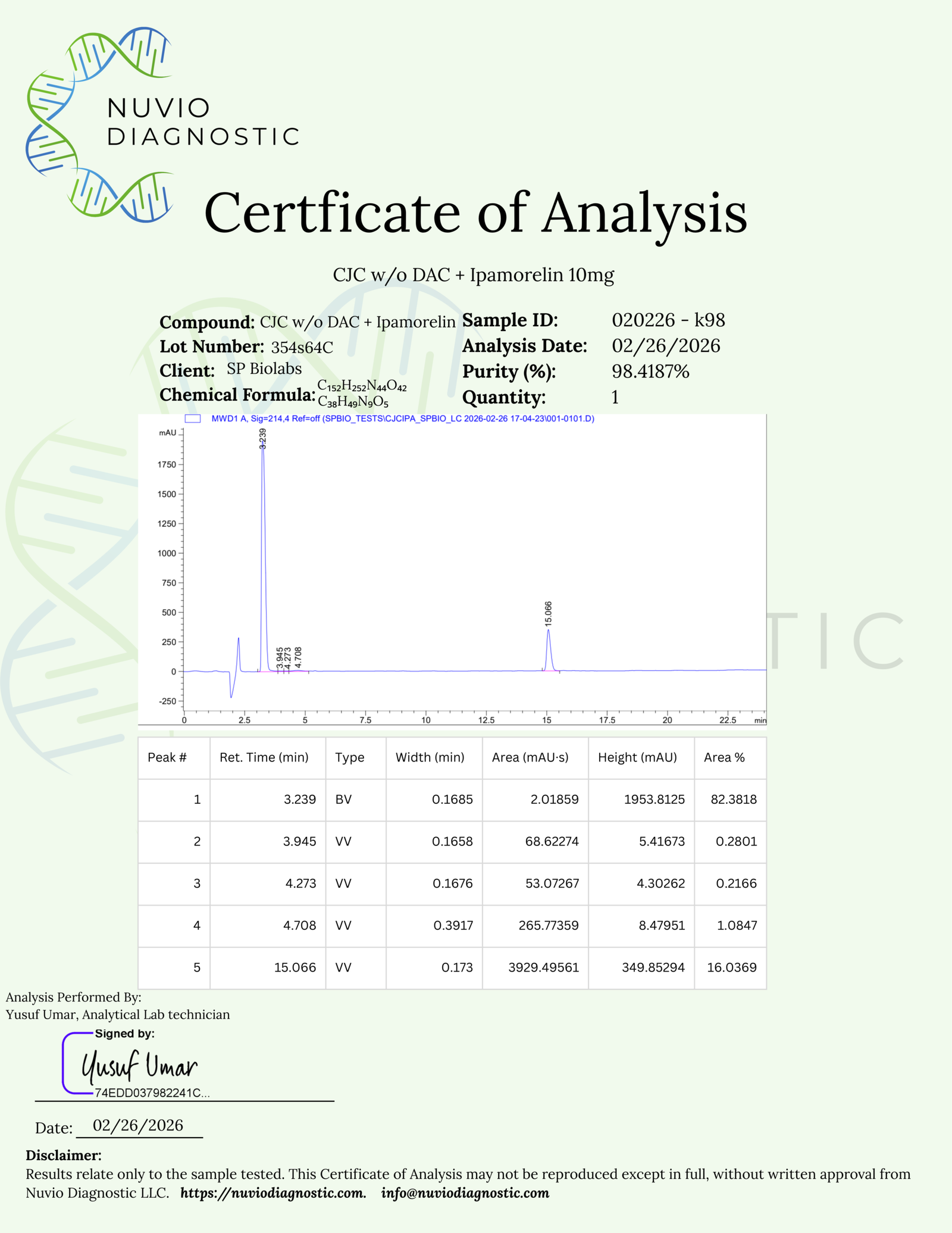 All products sold by SP Biolabs are intended for laboratory research use only. Not for human or veterinary use. Not for diagnostic, therapeutic, or cosmetic purposes. By purchasing, you confirm that you are a qualified professional or entity using these materials for lawful scientific research only.